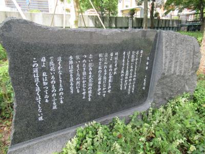 大阪府立中之島図書館の南、土佐堀川沿いの遊歩道の栴檀木橋近くに乳母車の歌碑があります。