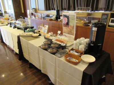 夕食は半個室のテーブル席で地酒と共に会席料理をいただき、朝食は夕食とは異なる大部屋でビュフェ形式で、品数も豊富でした。