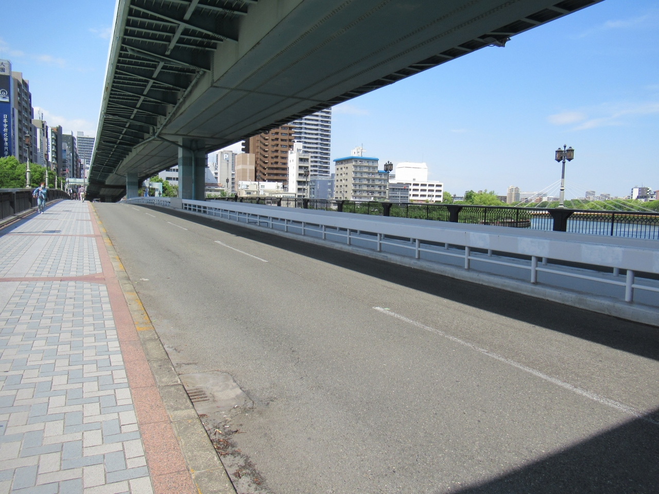 中之島から万博公園までの自転車道である北大阪サイクルラインが途中で川崎橋を渡るコースになっています。