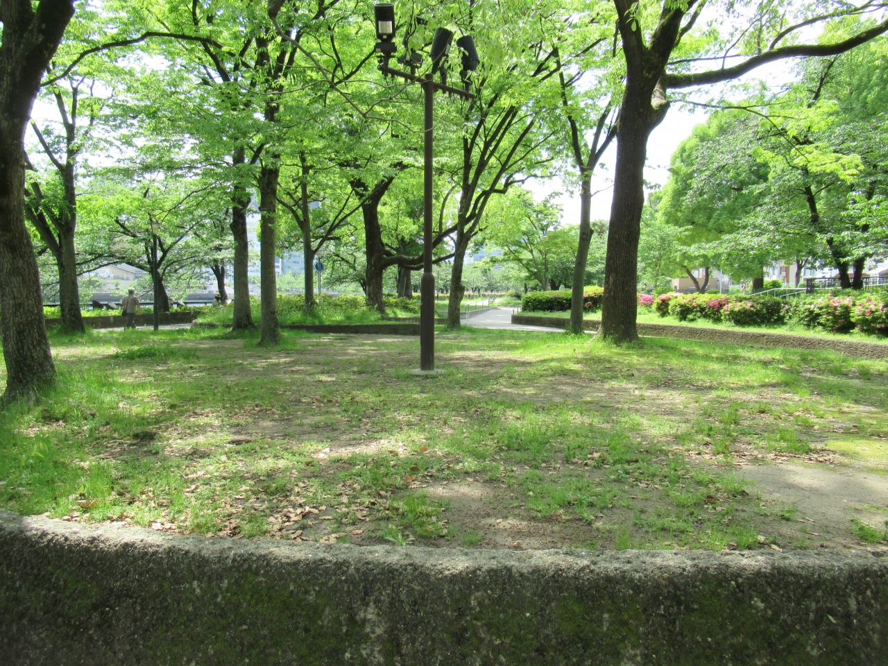 全体的に木々が生い茂っていて緑が沢山ある寛げる公園で、子どもが遊ぶような遊具はありません。