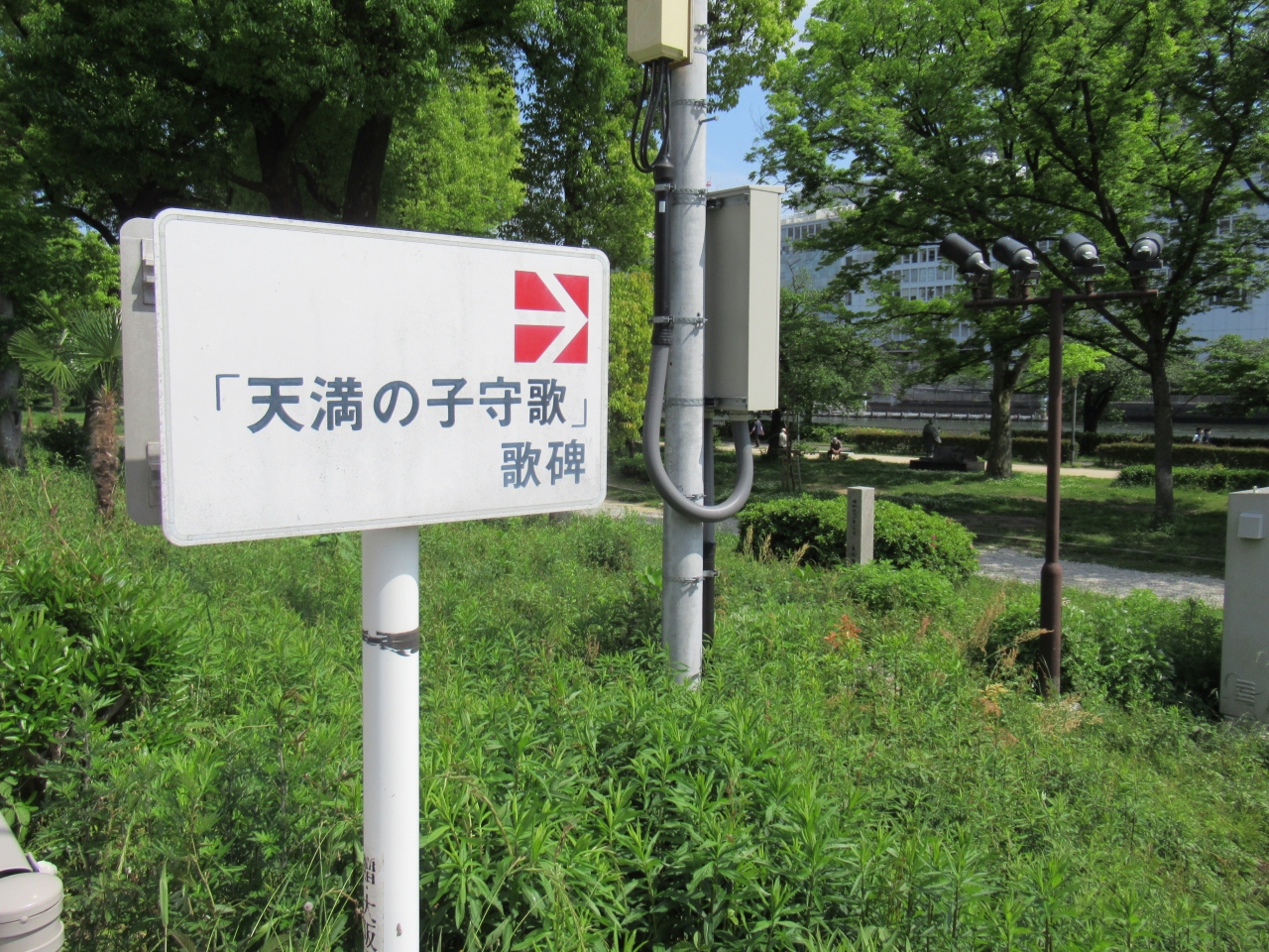 石碑に刻まれた歌詞は次の通りで、大阪天満宮の当時の宮司さんの筆によるものです。