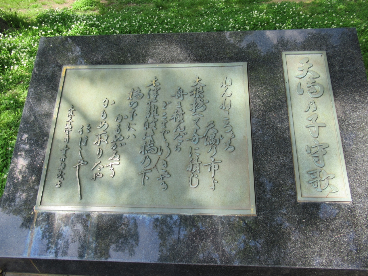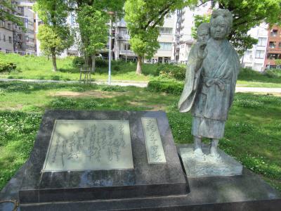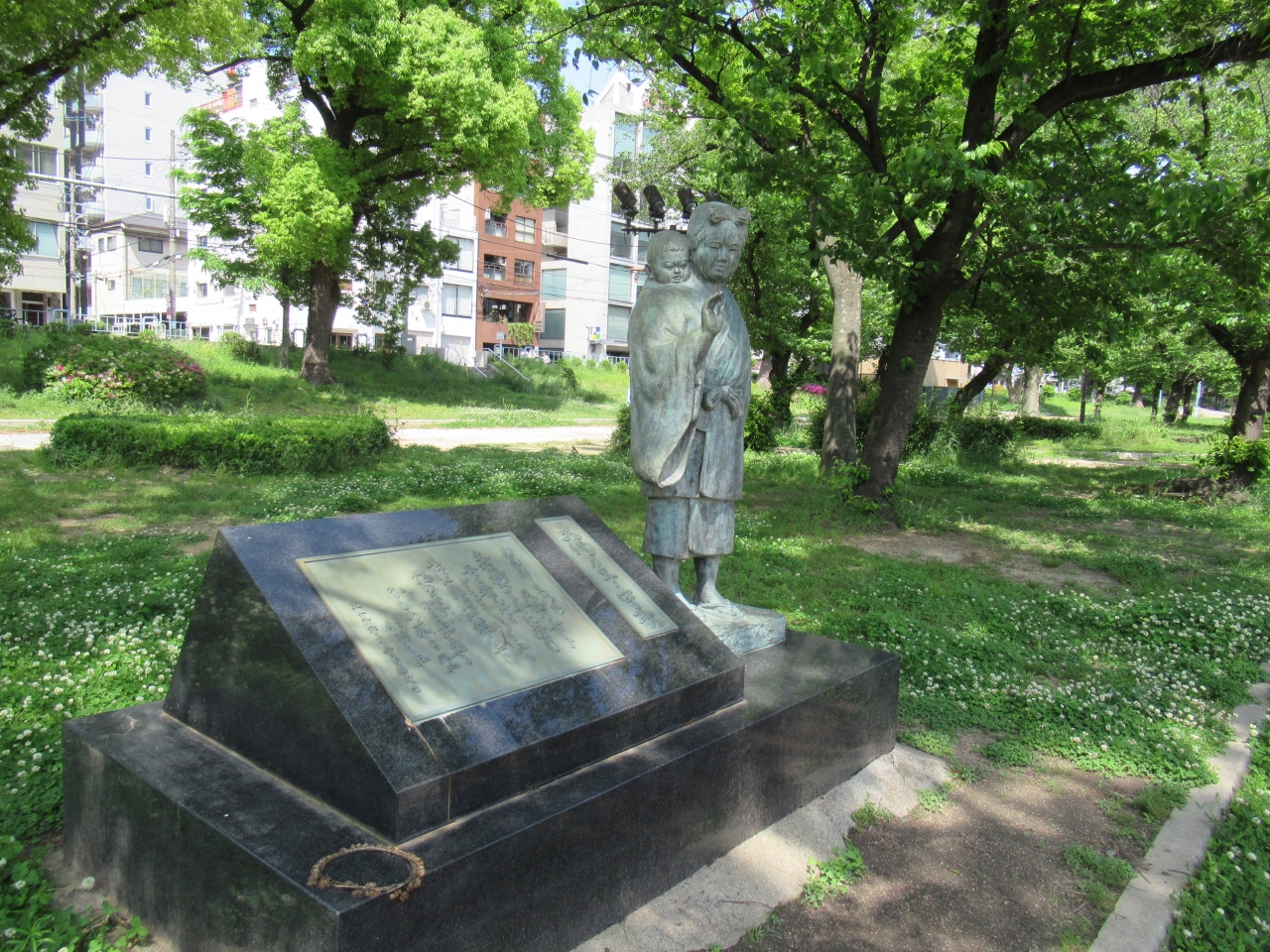 歌碑は、大川の北岸の南天満公園に大阪天満ライオンズクラブによって1983年の設置されたものです。