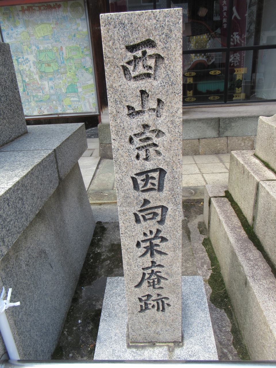 大阪市北区の天神橋筋商店街の近くの大阪天満宮の正門の右側に西山宗因向栄庵跡の碑があります。