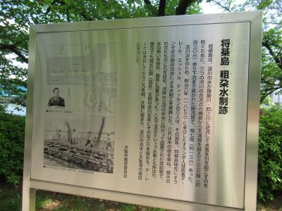 将基島は、1771年に旧淀川の水が寝屋川・鯰江川に逆流して水害を引き起こすのを防ぐために、三つの河川の合流点の網島から天満橋を越えて約430m余り下流まで築かれた隔流堤で、幅は約13mだったそうです。