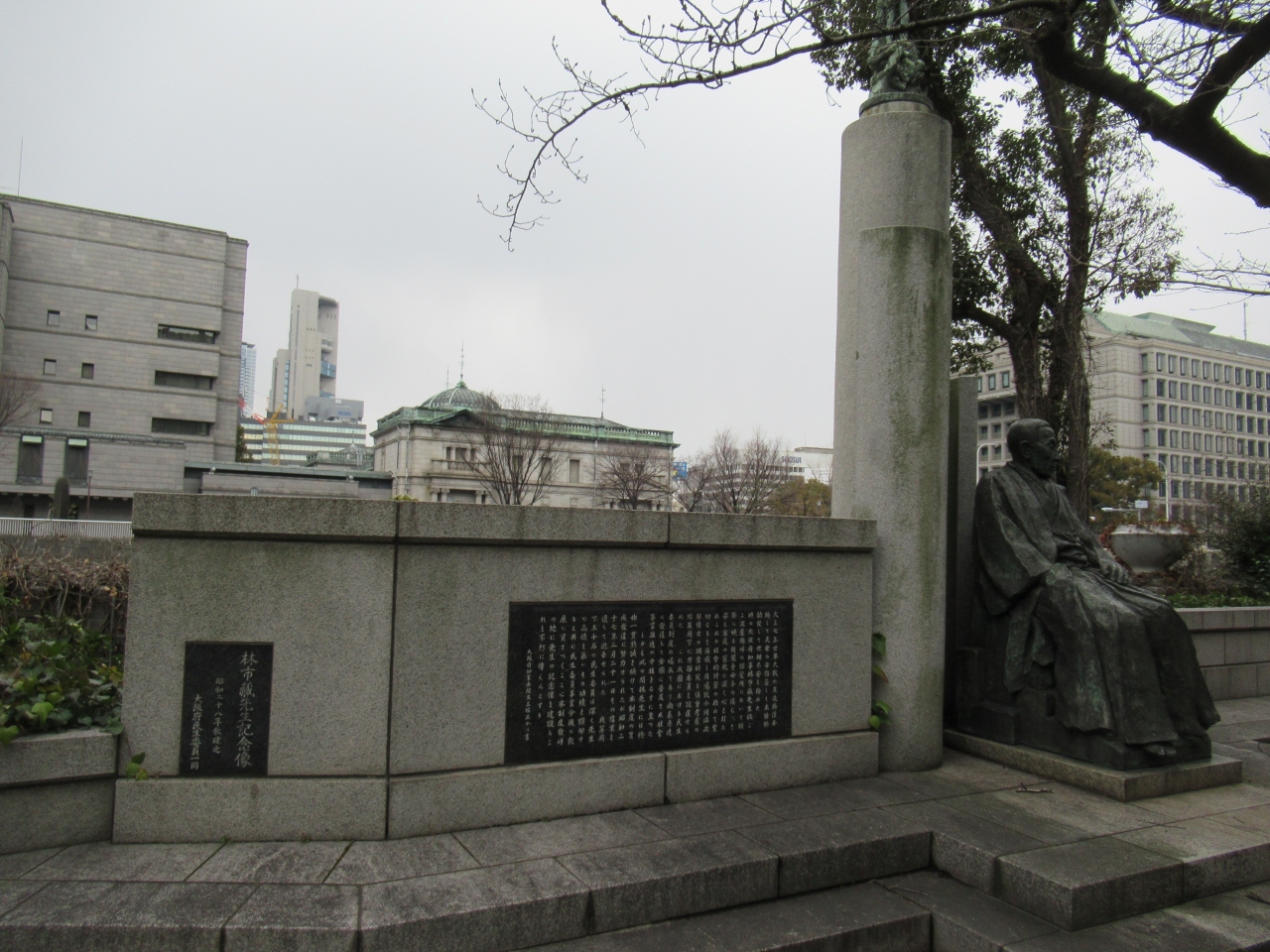 駅逓司(えきていし)大阪郵便役所跡として、御堂筋の淀屋橋の北にある日本銀行大阪支店の角に石柱が立っています。