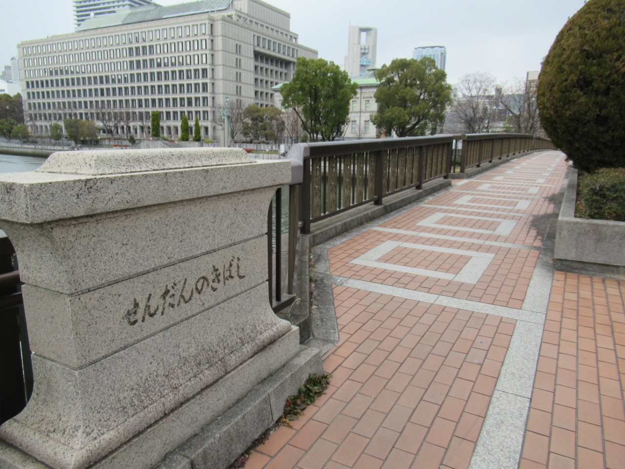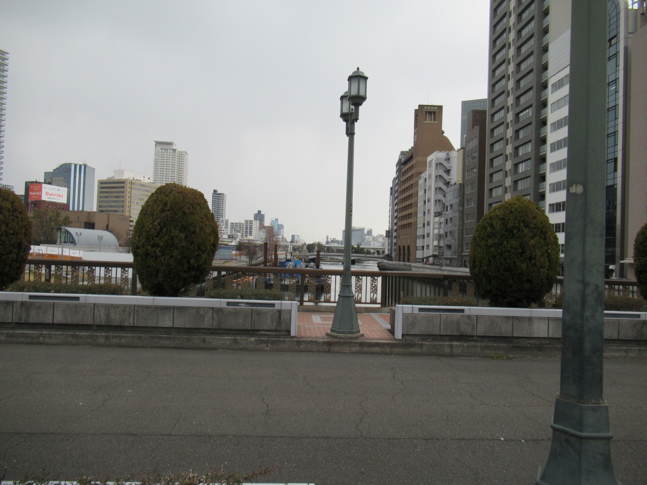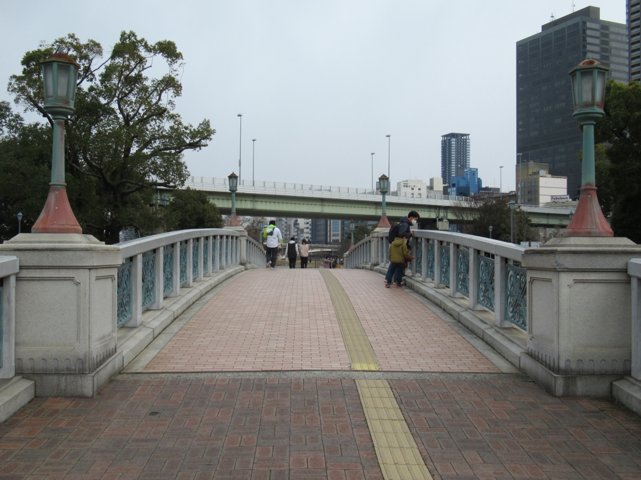 1985年9月に新しい橋に架け替えられ、府立図書館や中央公会堂など背景にある歴史的建築物との調和を考えてデザインされたそうです。- 旅行時期