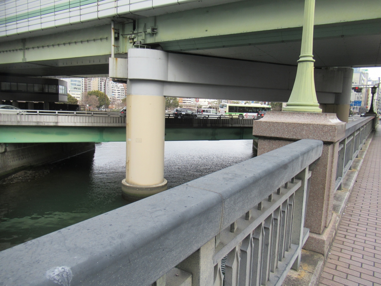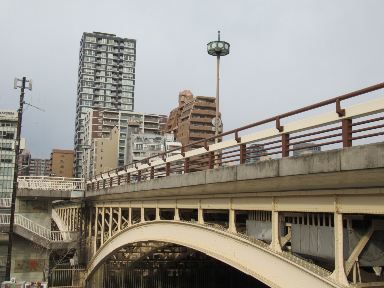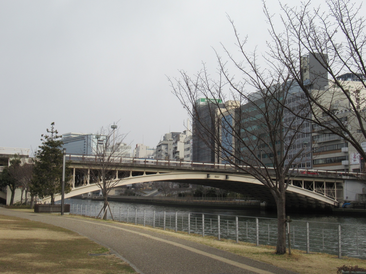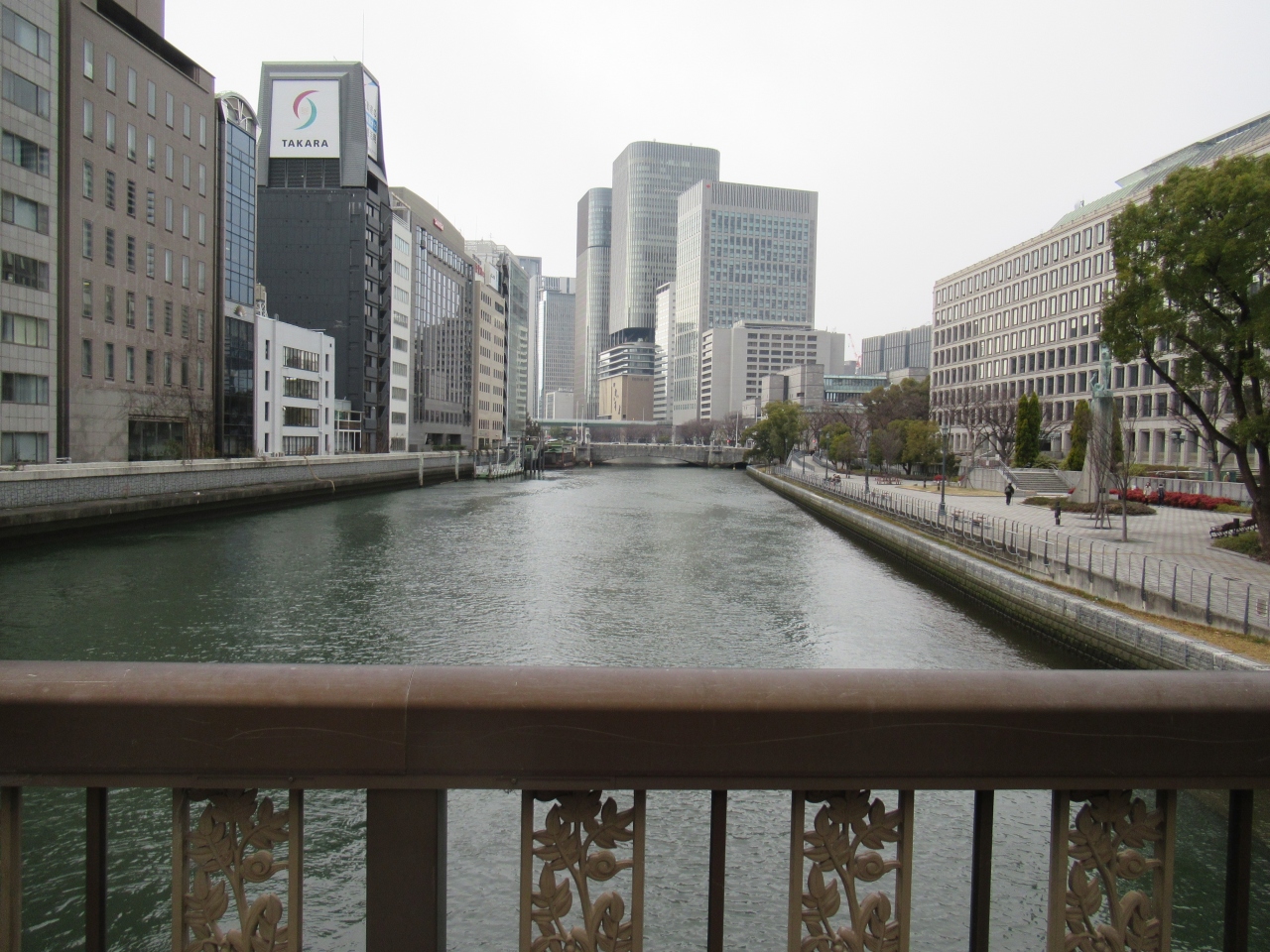 1985年9月に新しい橋に架け替えられ、府立図書館や中央公会堂など背景にある歴史的建築物との調和を考えてデザインされたそうです。- 旅行時期