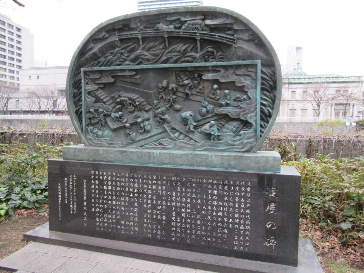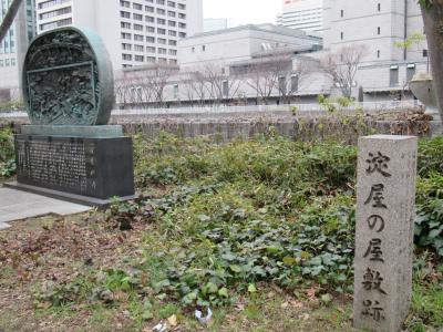 淀屋橋の南側の土佐堀川沿いに淀屋屋敷跡の石碑がありました。