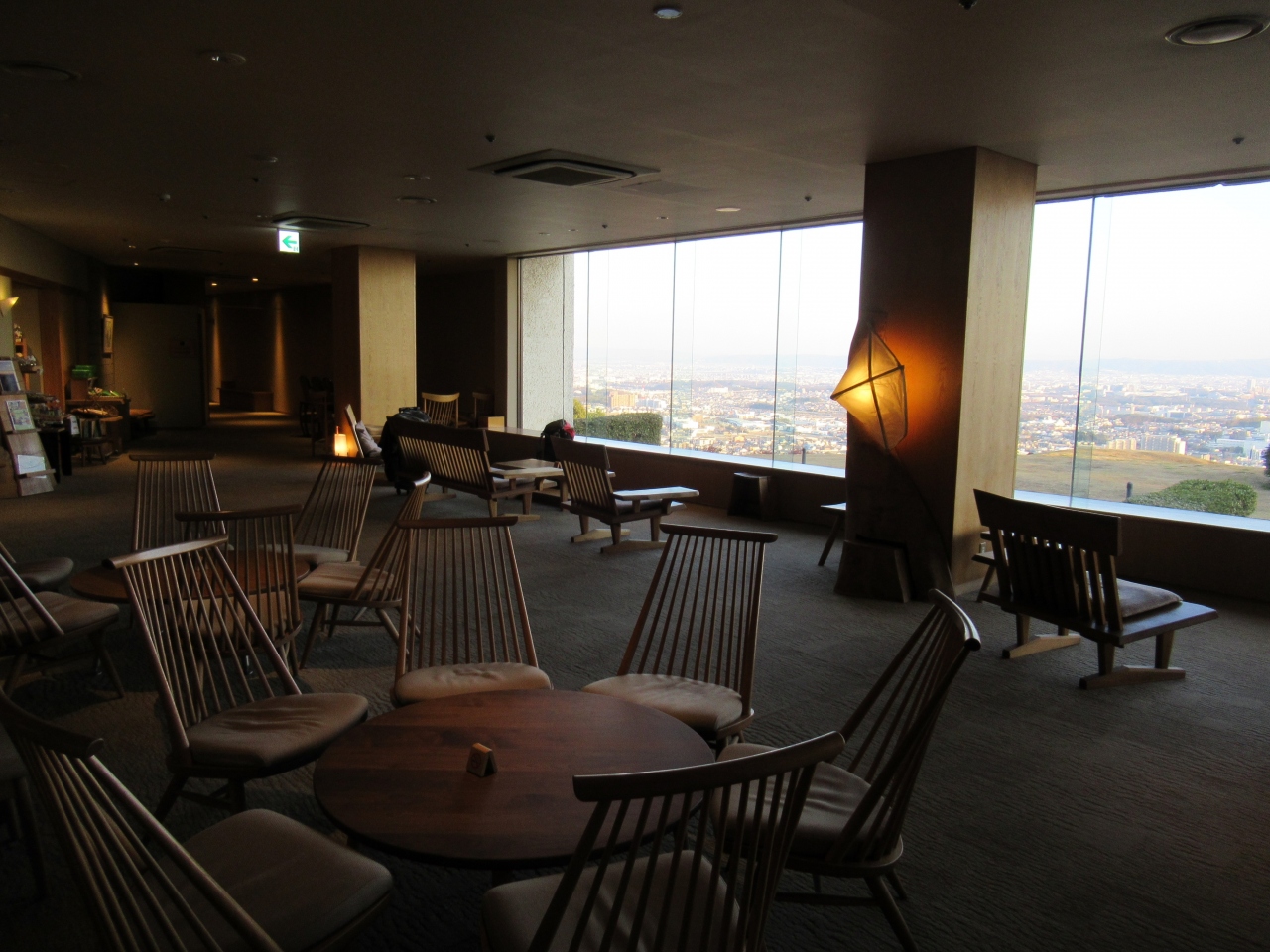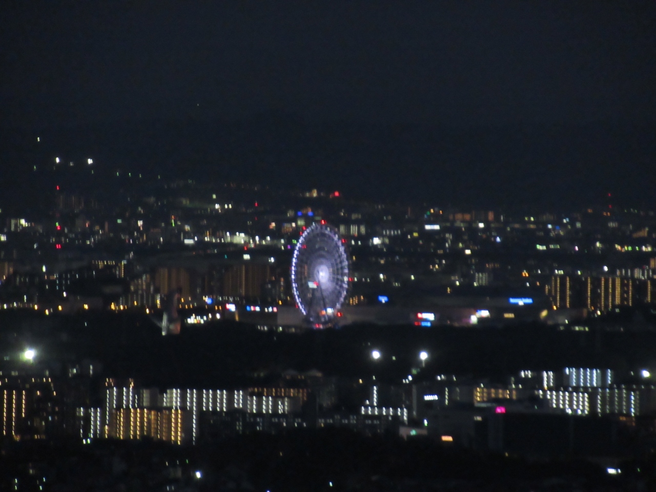 到着時は、天気が良くて大阪市内方面を見渡せてあべのハルカスも見えました。夜景では着陸する飛行機や万博公園の観覧車などを眺めました。