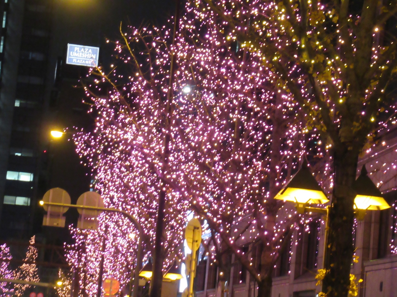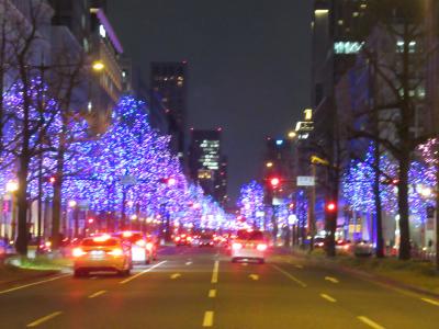 梅田から難波までの約4kmが区間ごとに色分けされたのカラフルなイルミネーションできらめきます。