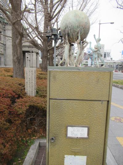 ここには今でも郵便ポストがあって、「郵便は世界を結ぶ」と記されていて、ポストの上には地球を持ち上げている人々の像がありました。- 旅行時期