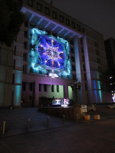 年末にはイルミネーションイベントとして大阪・光の饗宴が開催されて、大阪市役所もライトアップされていて綺麗です。