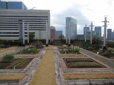 農園には冬野菜や冬の花が少しあっただけでしたが、グランフロントのビル群や六甲の山並みが見渡せて景色は良かったです。
