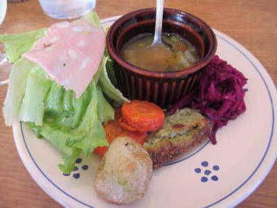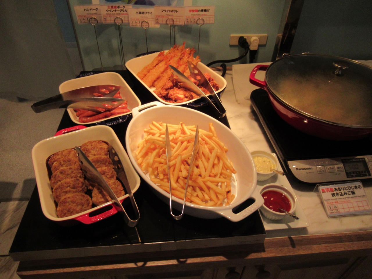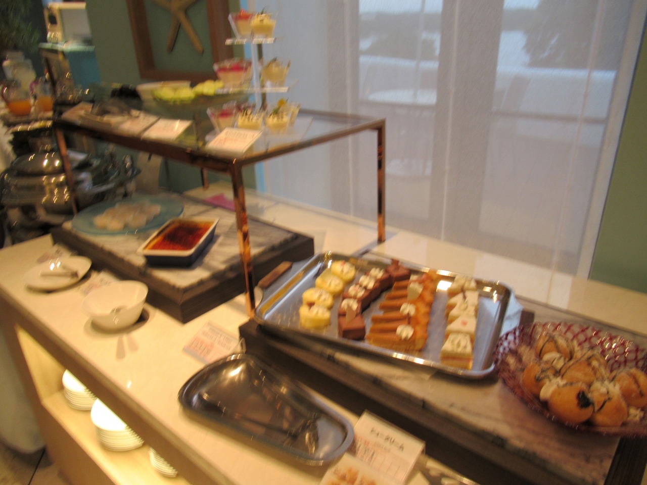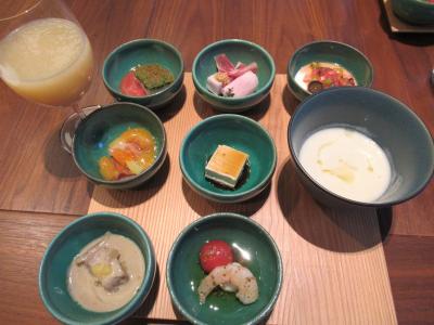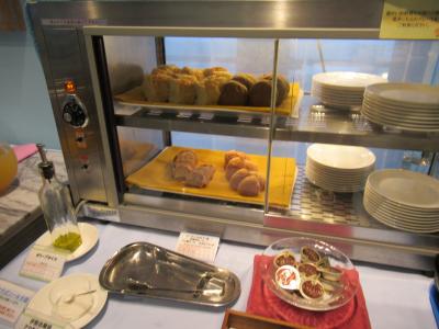 朝食は7種のプチプレートと出し巻きは共通ですが、洋食が基本でスープとクロワッサンが付き、追加料金を出せば和食で野菜の味噌汁とごはんにすることも可能です。色々な料理を少しずつ楽しめて味も良いですが、ビジネスホテルのビュフェや温泉旅館の朝食と比較すると少な目です。- 旅行時期