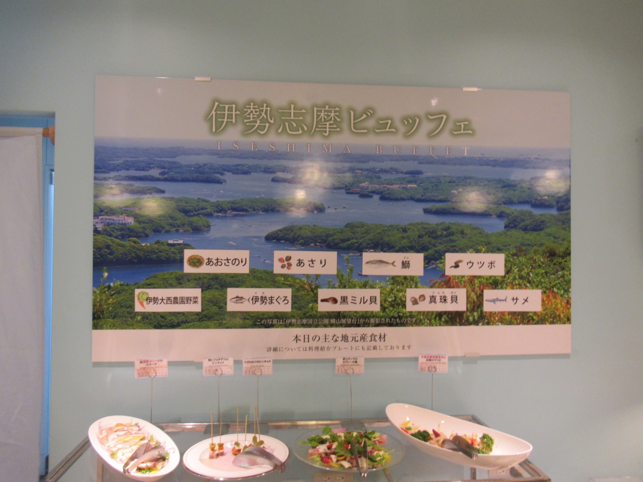料理は、魚介類を使ったオードブルや彩ゆたかなピンチョスの他に肉料理など色々あって、伊勢志摩名物のてこね寿司や伊勢うどんもありました。