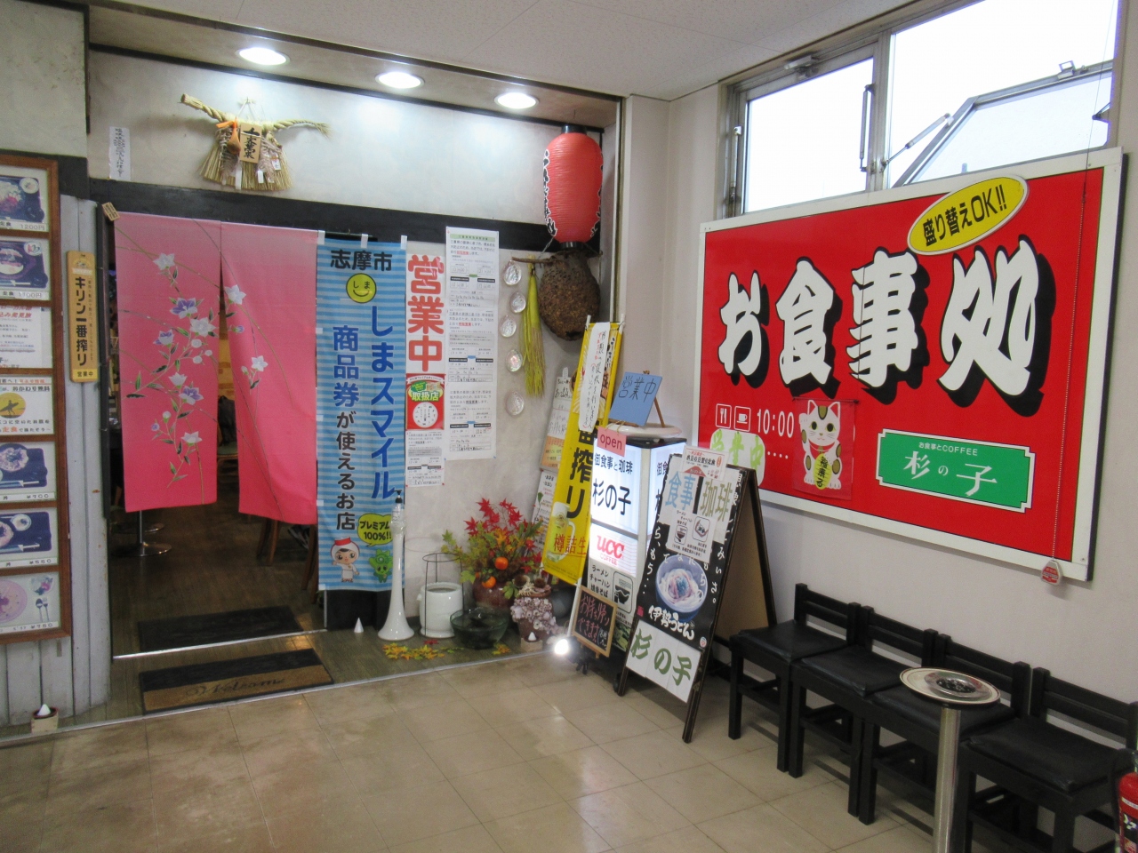 志摩へ旅行した帰りのお昼に鵜方駅近辺での昼食で入りました。近辺にはお店が幾つもありますが、時間があまりなかった事と何よりも雨が降っていたので、鵜方駅の隣にあるファミリープラザの中にある杉の子に決めました。