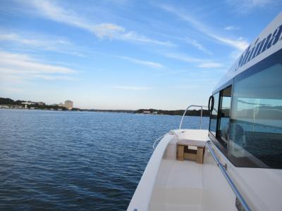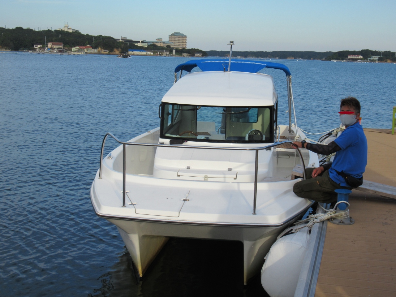 志摩地中海村の桟橋から小型クルーザーに乗船したのは、我家2名ともうひと家族4名でした。