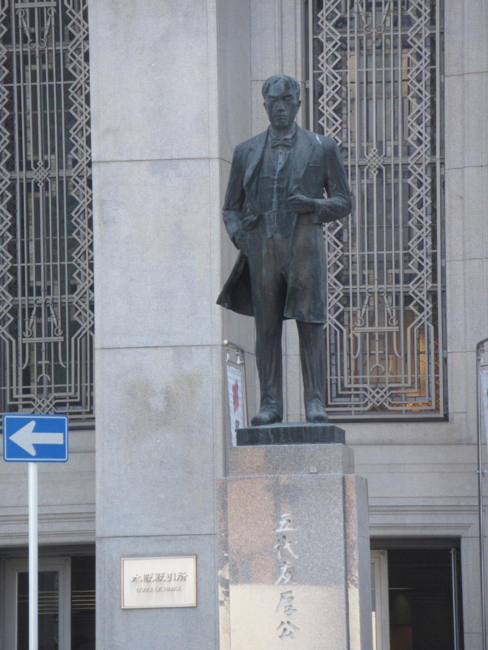 五代友厚像で一番有名なのは北浜にある大阪証券取引所の前にある銅像です。