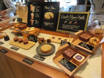 チョコレートは高級なチョコバーがメインですが、その他にチョコを使ったクッキー、ブラウニー、スコーンなどもあり、スコーンとブラウニーのセットをテイクアウトしました。