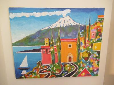 夫婦でランチで入店し、お店は広くはないですが、少しだけテラス席もありました。店内には南欧風の絵やシチリアの地図が飾られており、雰囲気は良く、土曜日だったためかお客さんがどんどんやって来てました。