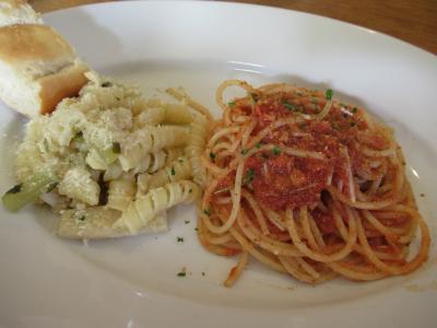 ランチメニューは3種類ありましたが、パスタランチとメイン付きにして、内容は、スープを含む前菜盛り合わせ、パスタ、メイン付きのみ鶏肉のソテー、デザートはティラミスで、全体的に美味しかったですが、特に印象に残るものはありませんでした。- 旅行時期
