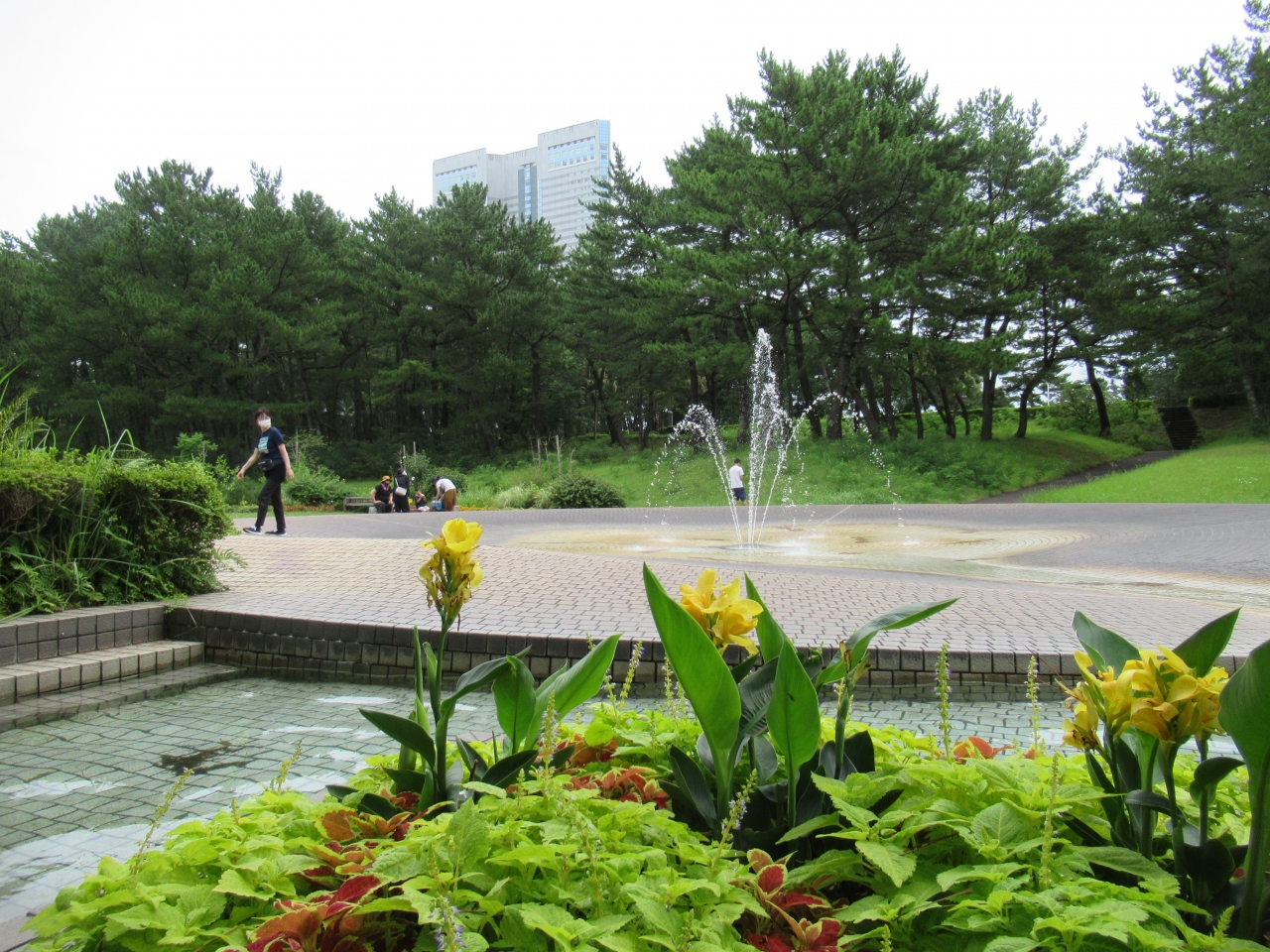公園の真ん中の東西に近鉄電車の線路が通っていて、頻繁に電車が通り過ぎていきます。