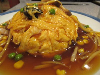 久しぶりに天津飯を注文しましたが、餡は黒酢あんでした。- 旅行時期