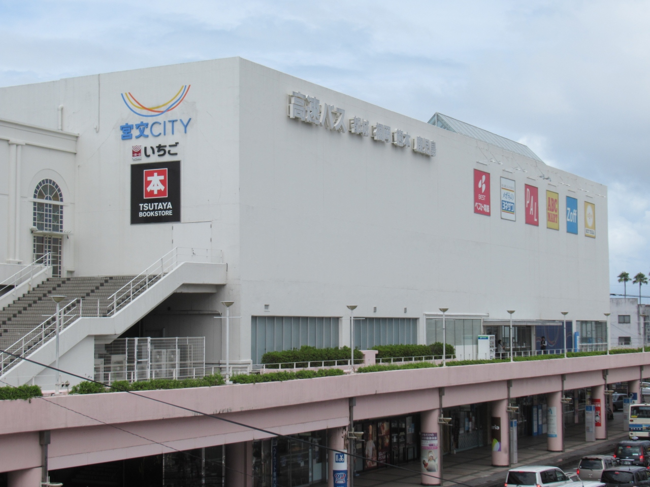 隣が宮崎交通のバスセンターとなっていますが、宮交シティはイオン、TSUTAYA、ベスト電機など有名店の他に多数の店舗が入った大きなショッピングセンターです。