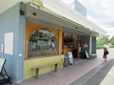 モノレールの万博記念公園駅から万博公園の自然文化園に向かって高速道路の上の橋を渡った所、入場券売り場の手前にあるのがノイカフェ。以前は普通の売店があったように思いますが、数年前からお洒落なノイカフェになっています。