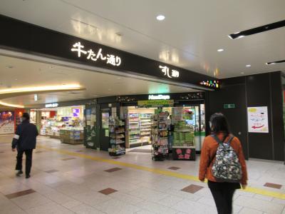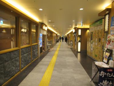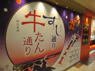 在来線改札のある2階からエスカレータで新幹線改札のある3階に上がり、新幹線の中央改札横の細い通りが牛たん通り・すし通りでした。