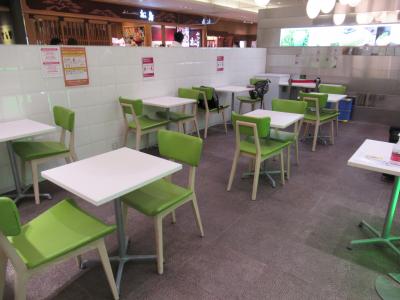 白いテーブルに椅子はもちろんずんだの黄緑色でした。