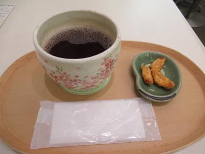 ずんだシェイクが人気のようですが、少し肌寒いような空模様だったので、奥さんはずんだ餅セット、わたくしは黒豆茶を頂きました。