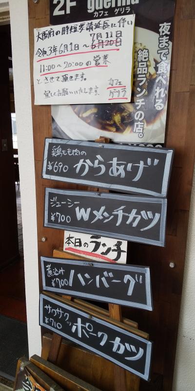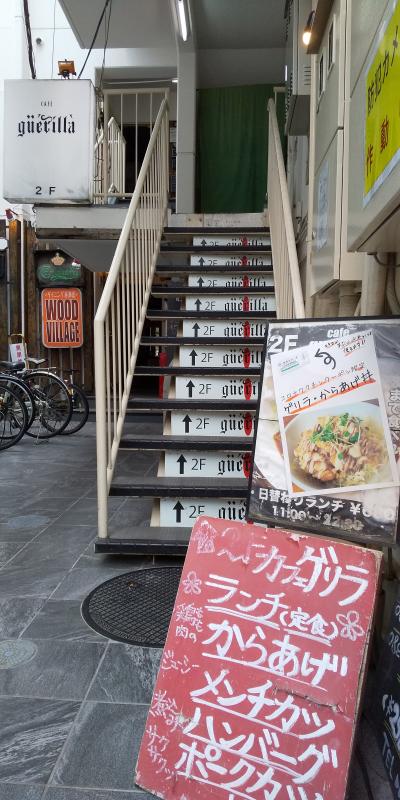 ランチで関大の正門前通りのお店に行ってみると一杯で入れず、近くにあったちょっと奥まった場所にあるカフェ・ゲリラに入ってみました。