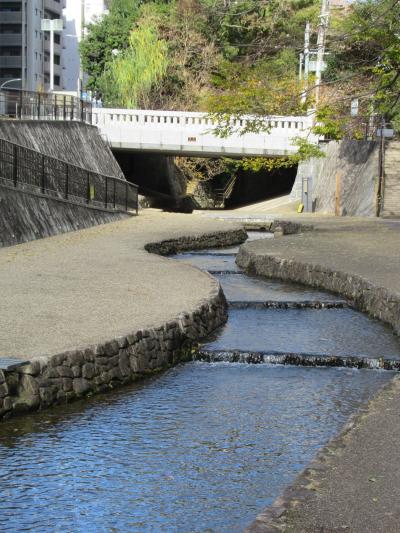 川幅自体は結構あって、底面が遊歩道になっていて、さらに掘り下げられたところを水が流れており、二条の辺りまで続いているようで、そこから先は地下を流れて鴨川に合流するそうです。