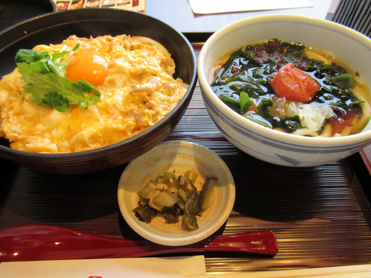 親子丼定食にしましたが、うどんはは6種類の中から選べて梅ワカメにしました。