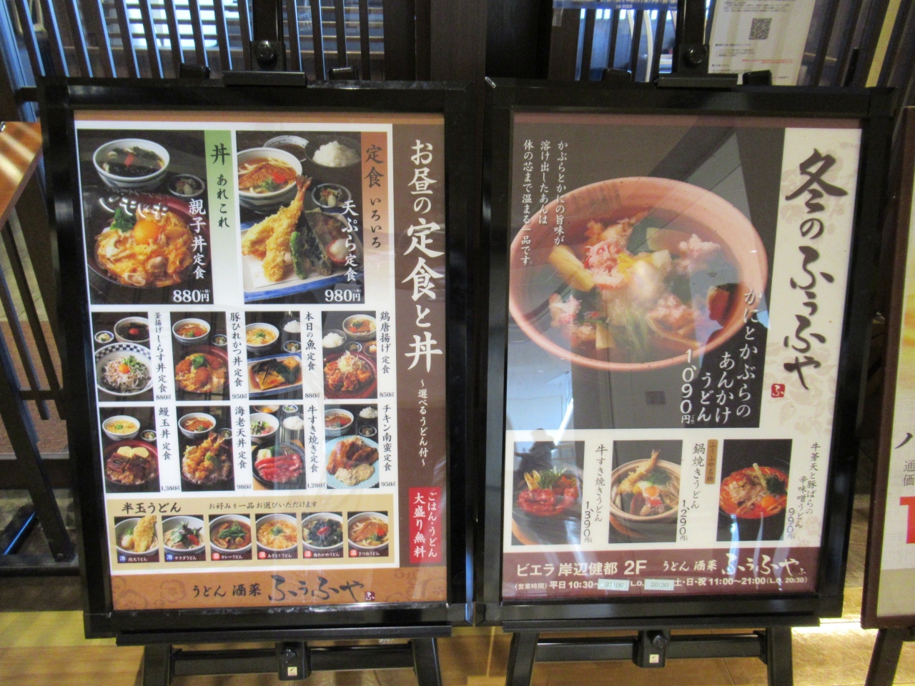 JR岸辺駅の北側、国立循環器病研究センターと吹田市民病院の間にある商業施設ビエラ岸辺健都の2階にあるうどんと和食のお店。