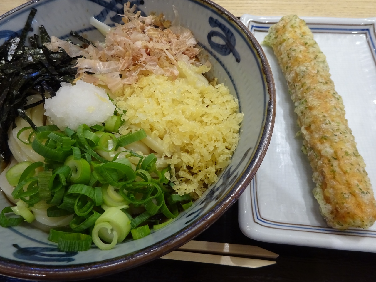 平日のお昼過ぎに一人で行きましたが、フードコート全体結構にぎわっていて、宮武讃岐うどんも少し並んでいましたが、スムーズに流れて、ぶっかけうどんとちくわ天にしました。