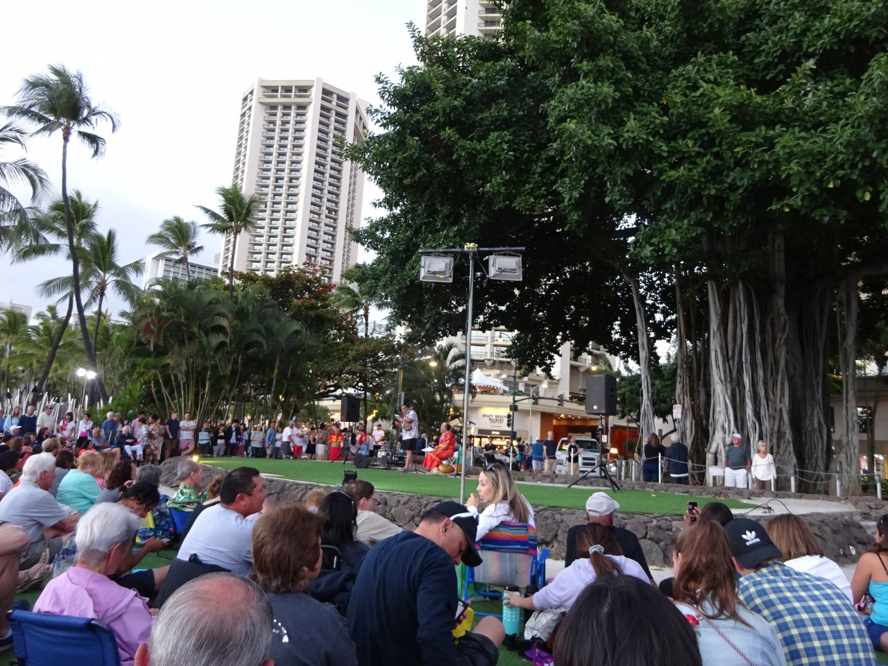 ホノルルへ行った際は、以前奥さんがフラを習っていたこともあって、クヒオビーチの無料のフラショーをよく見に行きます。