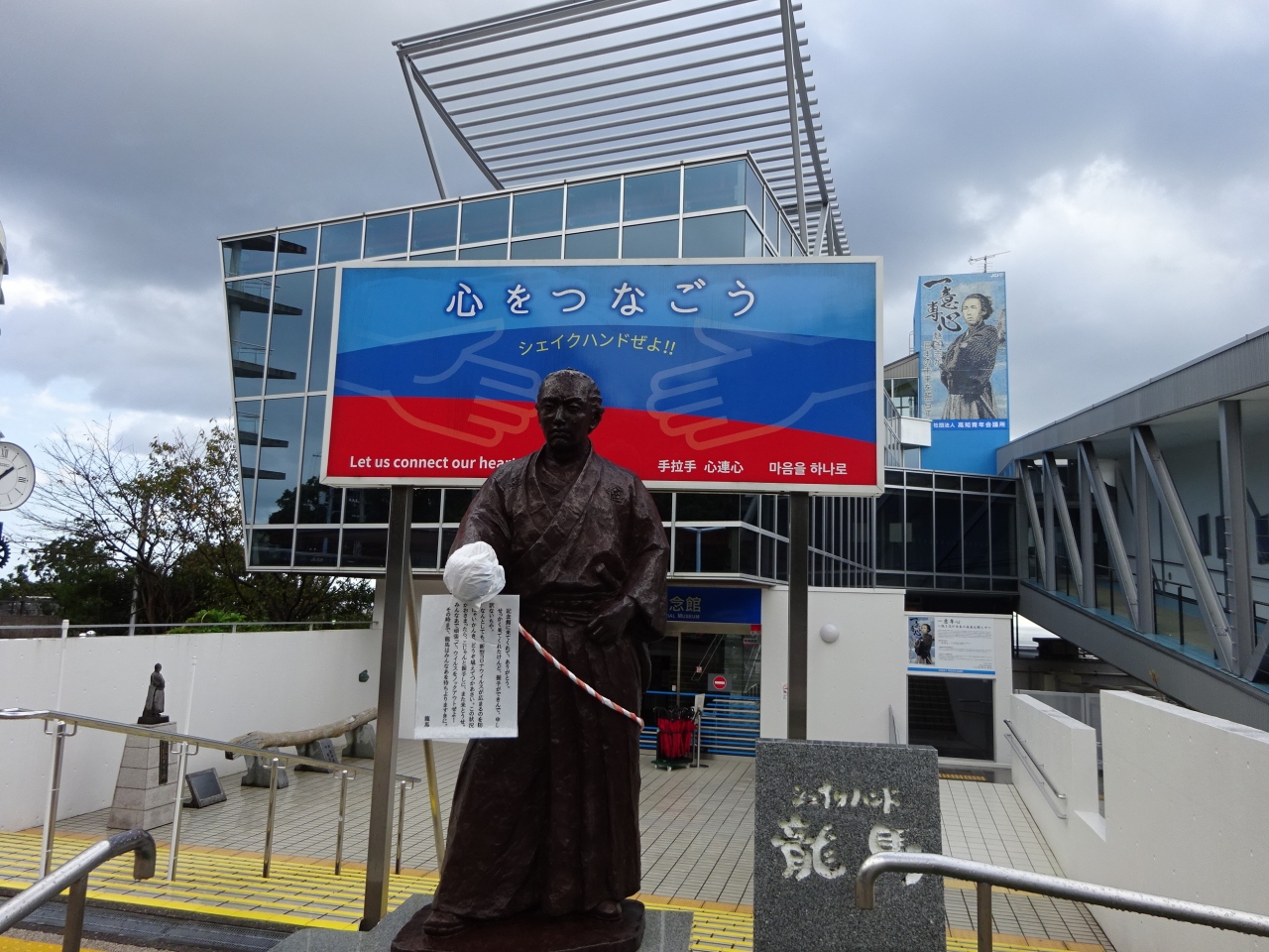 高知旅行では竜馬ゆかりの地へ行ってみたいと思い、一番が桂浜でしたので、その前に坂本龍馬記念館へ行ってみました。記念館は高知県立でとても立派な施設です。高知の観光資源は、一番が竜馬で二番目がアンパンマンの感じで、県としても大変力が入っているようでした。竜馬は土佐藩を脱藩してから活躍したので、活動の中心は京都や長崎ですが、没後の故郷でこれほど大切にされているとは草葉の陰で驚いているのではないでしょうか。
