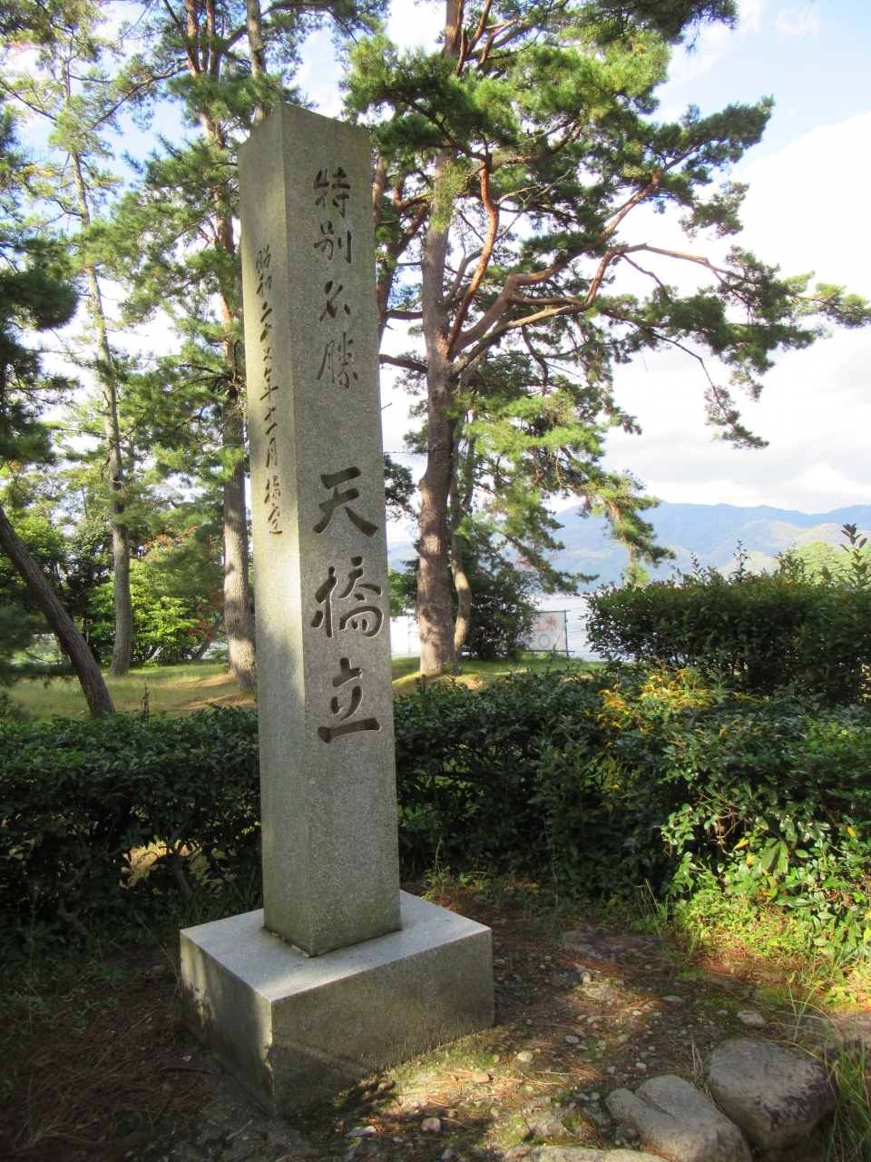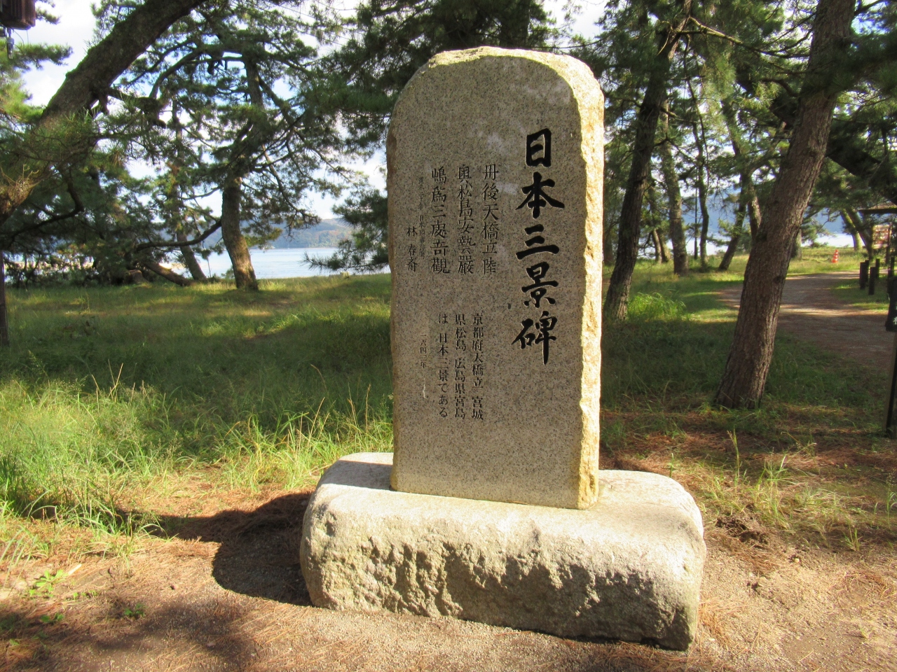 石見重太郎あだ討ちの場は、京都府宮津市の宮津湾と内海の阿蘇海を南北に隔てる長い湾口の砂州である天橋立の真ん中あたりにあって、石碑が立っています。