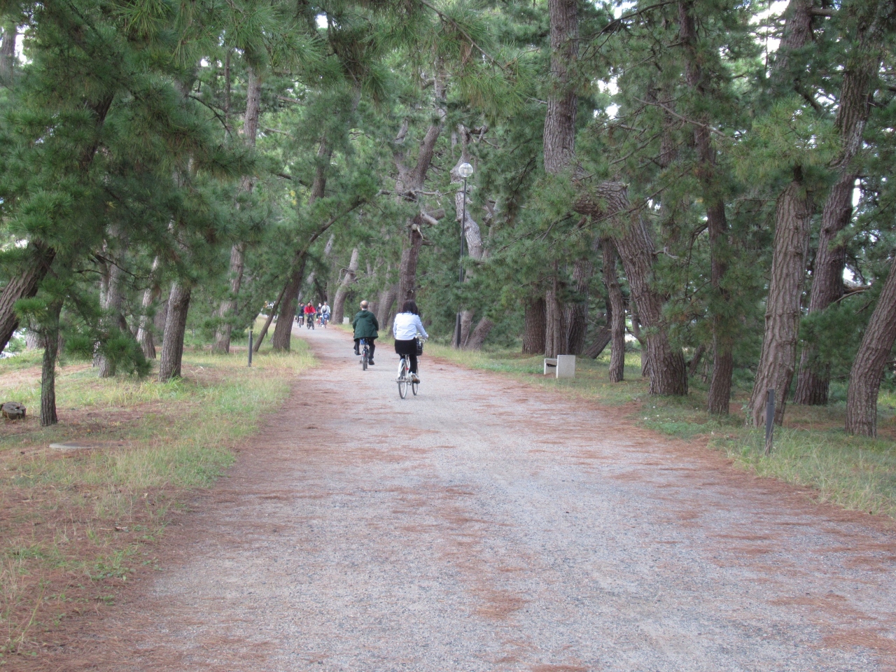 幅は約20~170mで全長約3.6kmの砂州には約6,700本もの松が生い茂る珍しい地形で、訪問時は往路はレンタサイクルで砂州を、帰路はモーターボートで湾を移動しました。