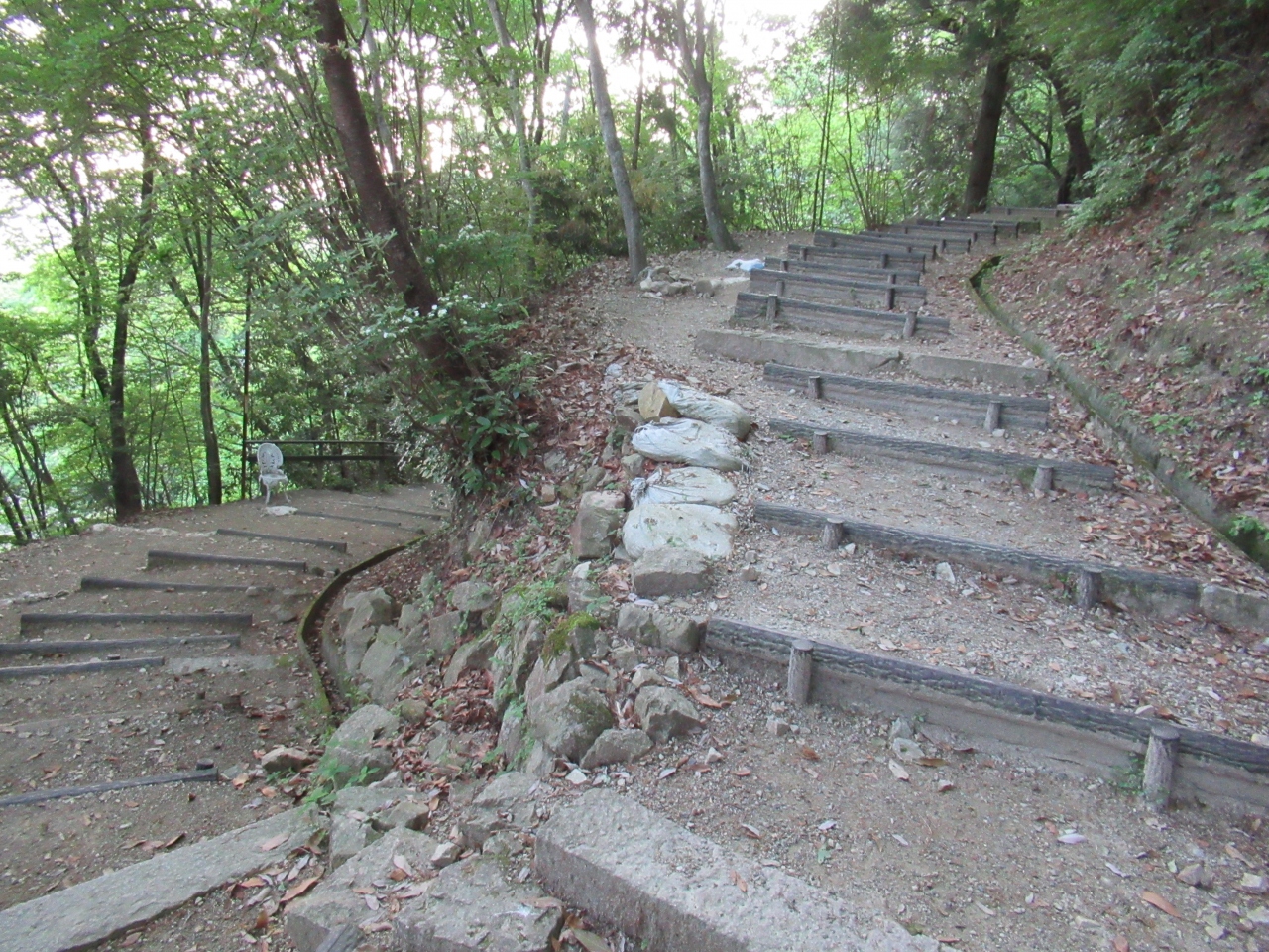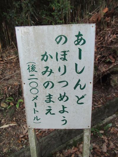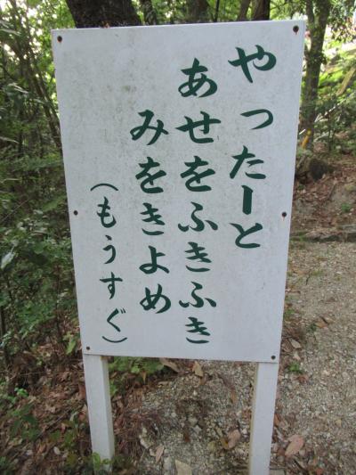 石段の途中には、励ますような立看板の句あってほほえましく登っていきました。