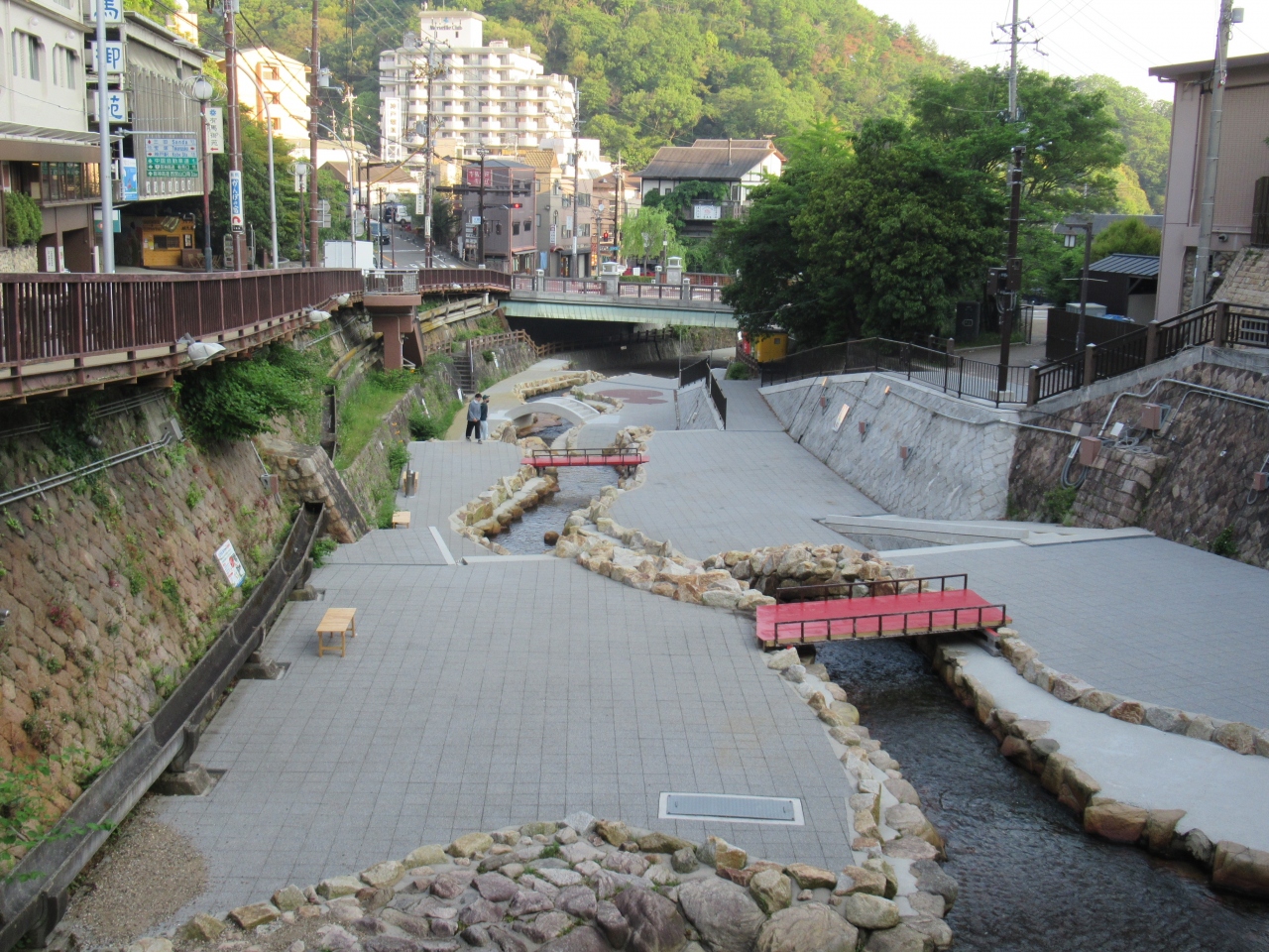 ロケーションは、有馬温泉の中でも中心的場所の金の湯から坂道を上った上の方の斜面に建っています。