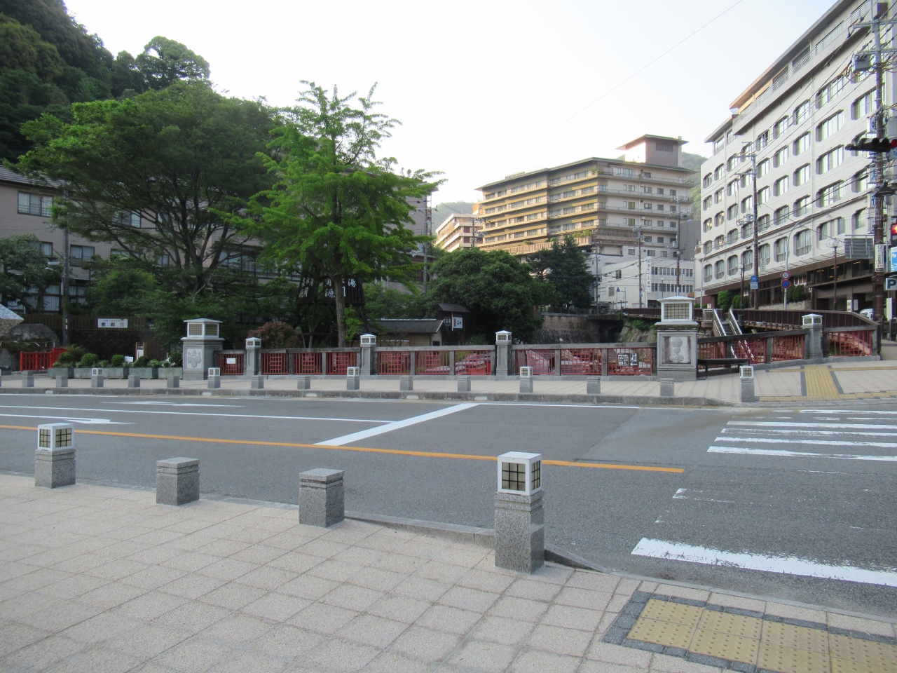 有馬温泉は斜面にあって温泉街には狭い道しかなく、温泉街の入り口にあたる太閤橋の太閤橋交差点が有馬で一番交通量の多い場所です。