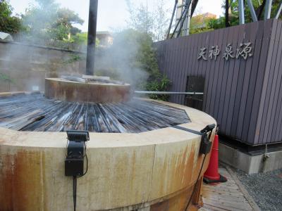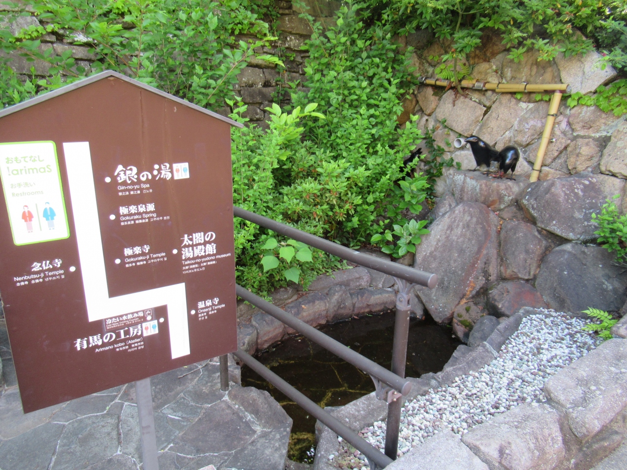 有馬温泉の金の湯から坂を上がって行った先に炭酸泉源公園があり、宿泊していたホテルハーヴェスト有馬六彩の別館の出入り口のそばです。