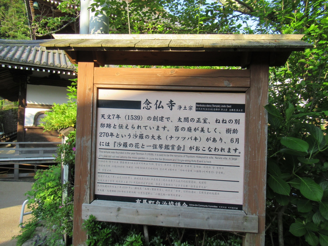 ねねは、秀吉に連れられて、しばしば有馬温泉に湯治に訪れ、今は念仏寺のある高台に別邸を建てたそうです。