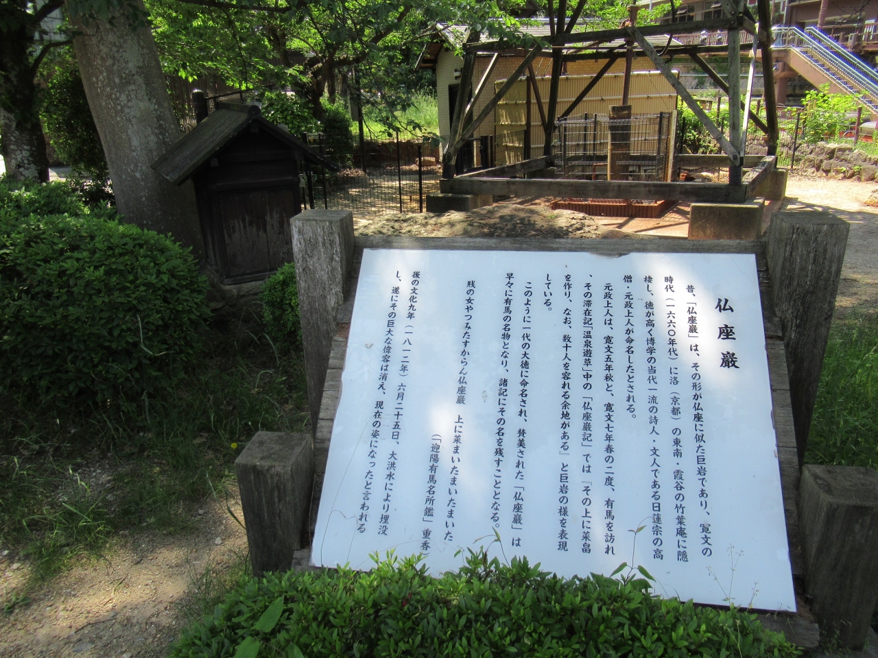 神戸の有馬温泉の太閤橋の直ぐ近くに「袂石」と並んで、「仏座巖(ぶつざいわ)」と呼ばれる巨岩があります。