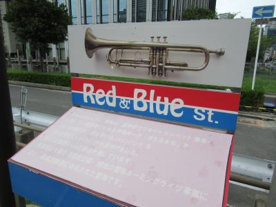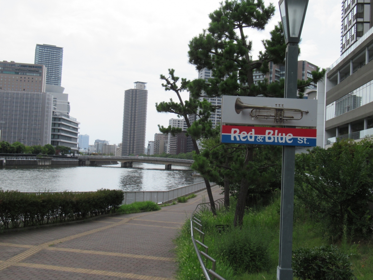 Red&Blue Streetは、大阪の田簑橋から玉江橋の堂島川の北側沿いにある遊歩道で、正式名称は福島浜緑道というそうです。