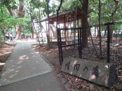公園の奥には屋根つきで柱に囲まれた神社のような建物があり、その下にある丸い石の井戸から炭酸泉が湧き出ているとのことでしたが、訪問時は少し流れているだけでした。