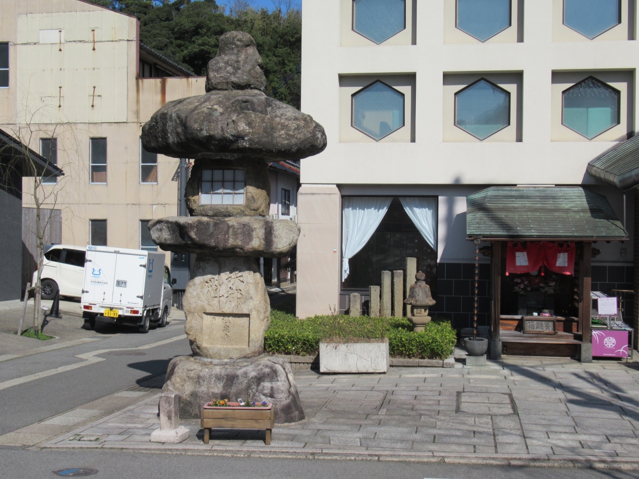 比較的新しそうに見えますが、角には昔からあると思しき石灯籠が威厳を放っています。